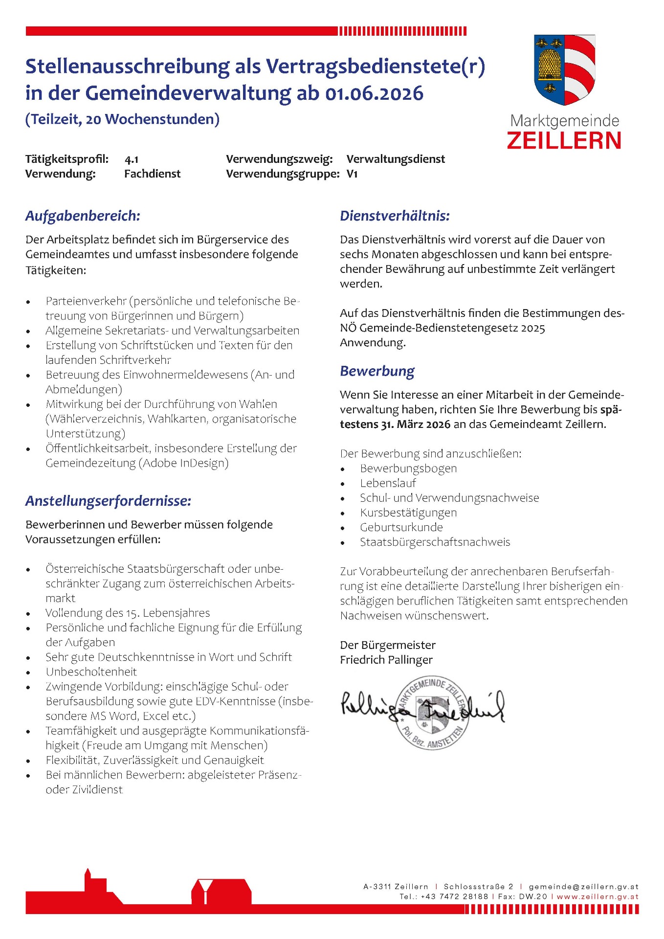 Verwaltungsdienst - Marktgemeinde Zeillern