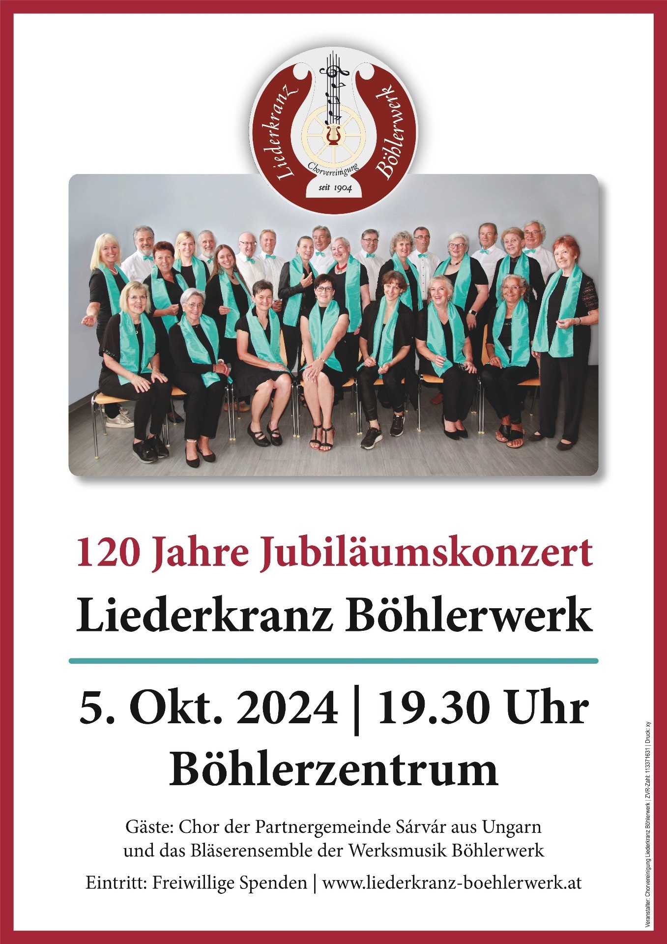 Das Konzert wird gemeinsam mit dem gemischten Chor unserer Partnergemeinde Savar aus Ungarn gestaltet.5. Oktober 2024 im Böhlerzentrum