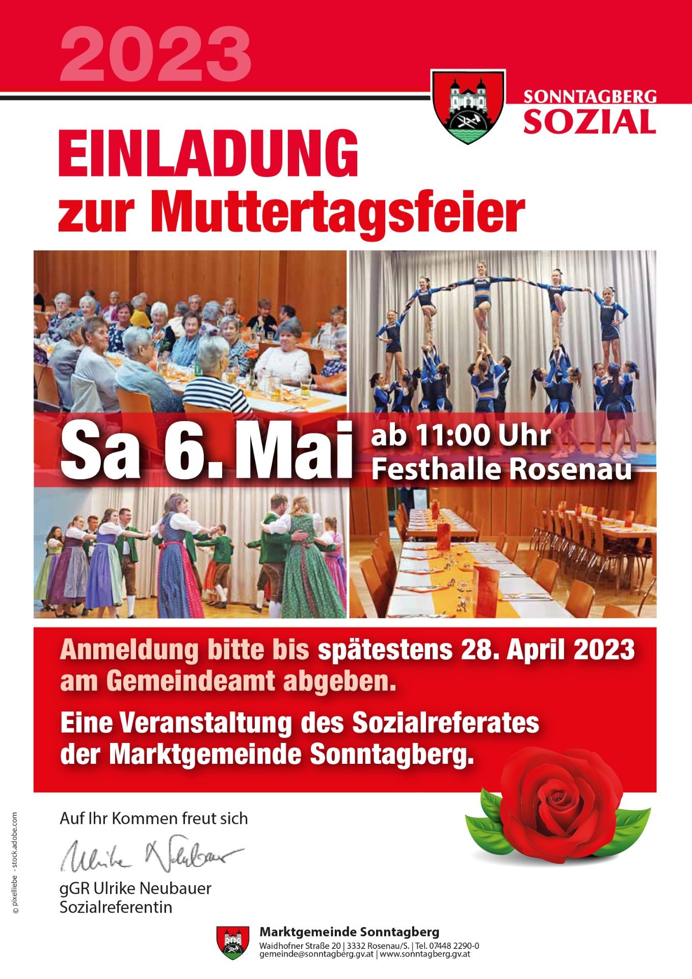 Anmeldung am Gemeindeamt unter 07448 / 2290 oder per Mail unter gemeinde@sonntagberg.gv.at