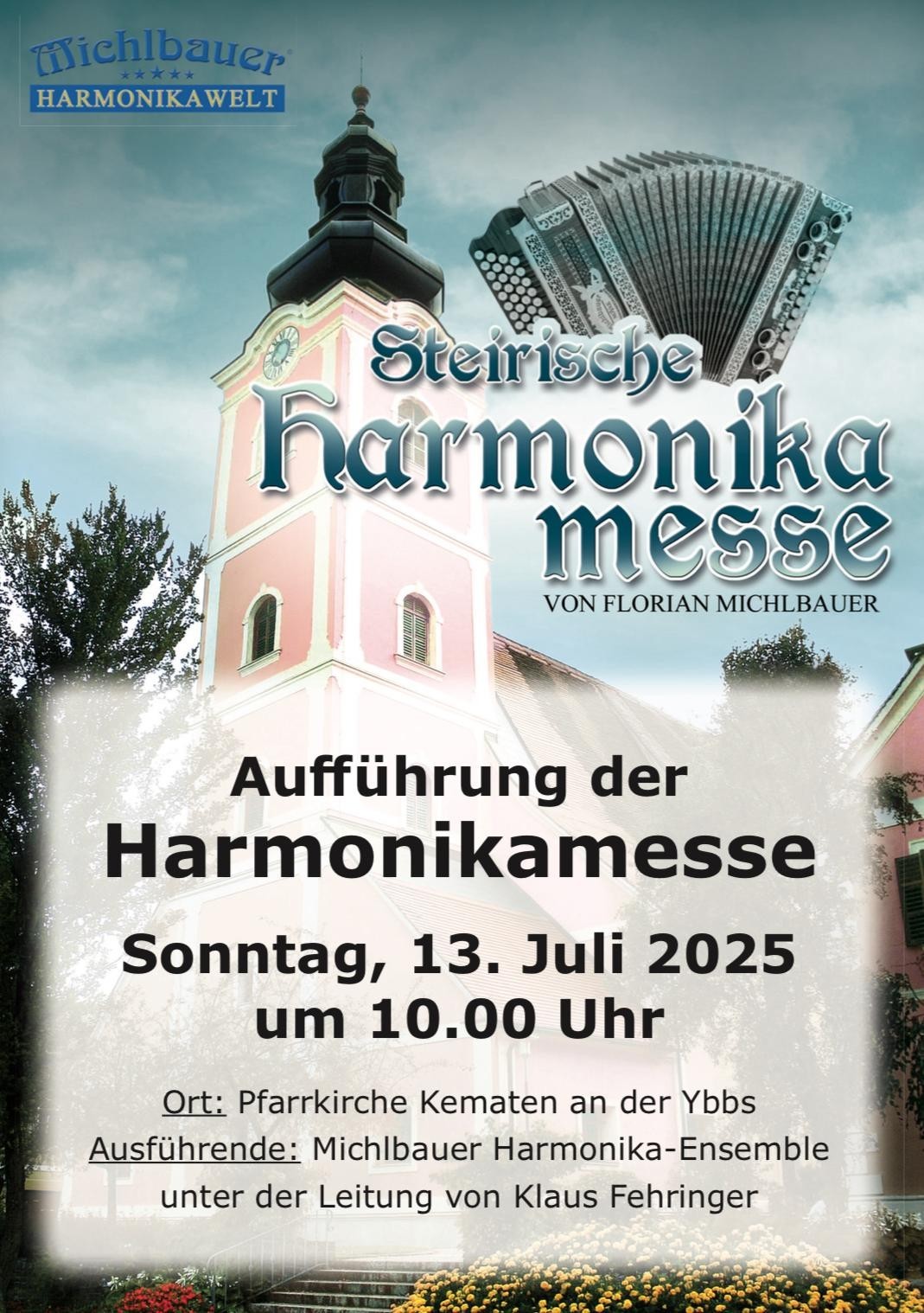 10 Uhr Hl. Messe in der Pfarrkirche Kematen mitgestaltet vom Michlbauer Harmonika-Ensemble unter der Leitung von Klaus Fehringer. Im Anschluss Agape im Pfarrhof.